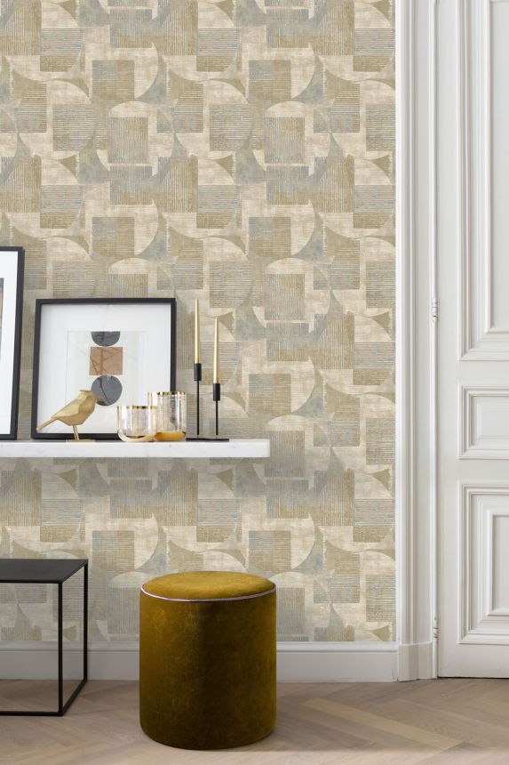 Gray-ochre geometric pattern wallpaper, RE25161, Reflect, Decoprint