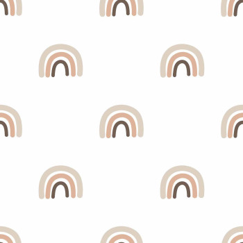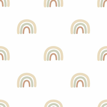 White non-woven wallpaper, rainbow in shades of brown, green and golden beige.