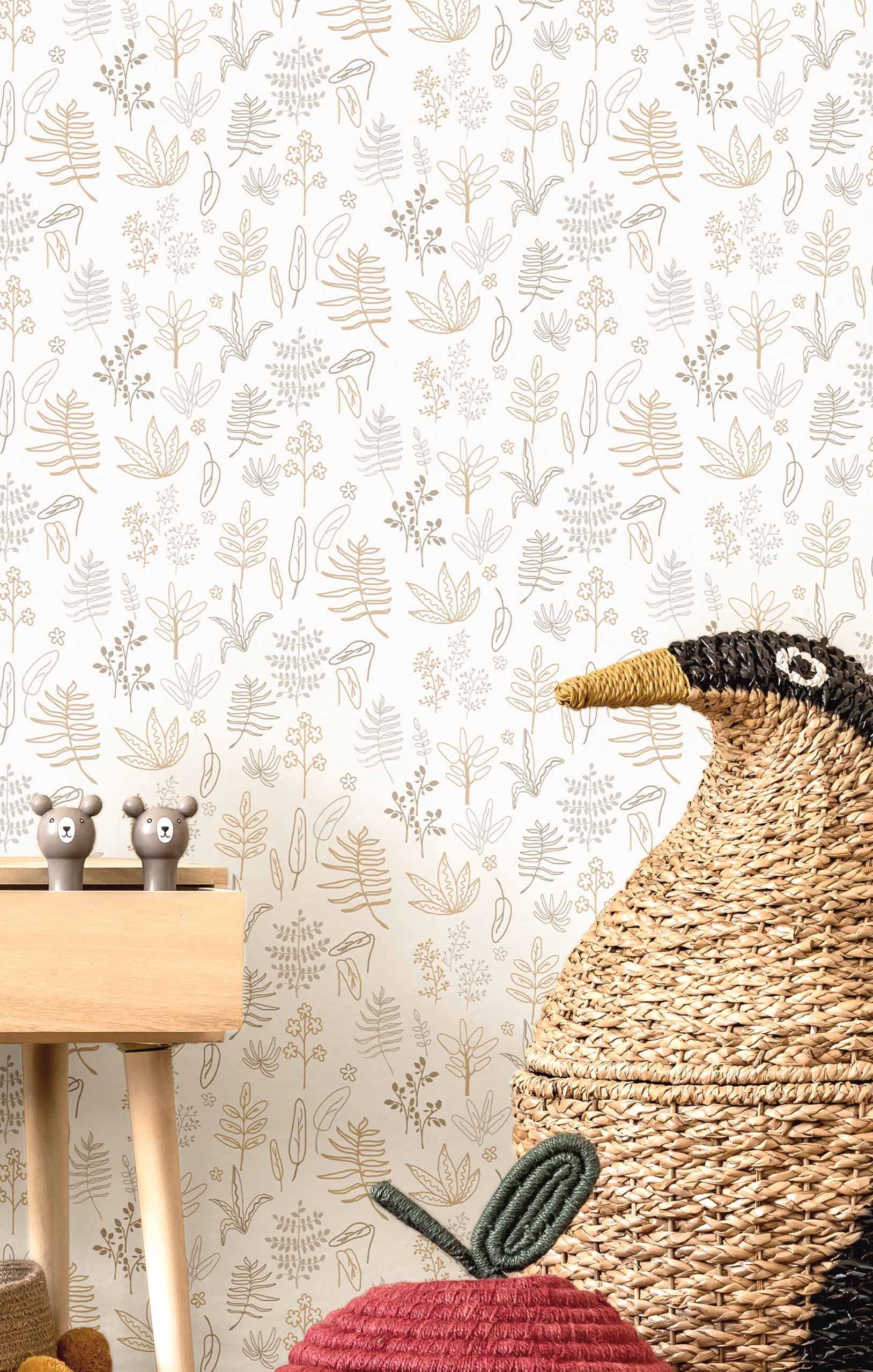 Children's white wallpaper with plants and leaves, 17168, MiniMe, Cristiana Masi by Parato