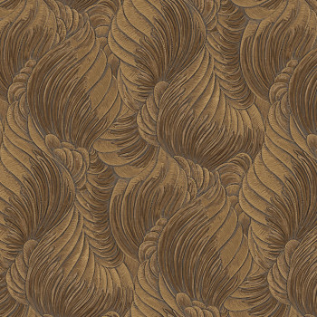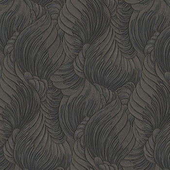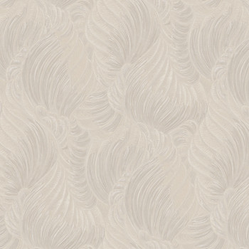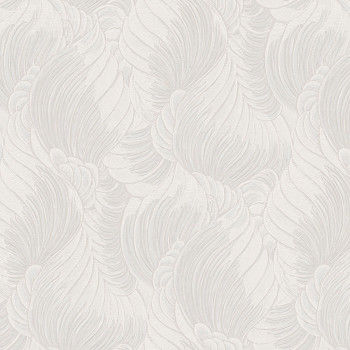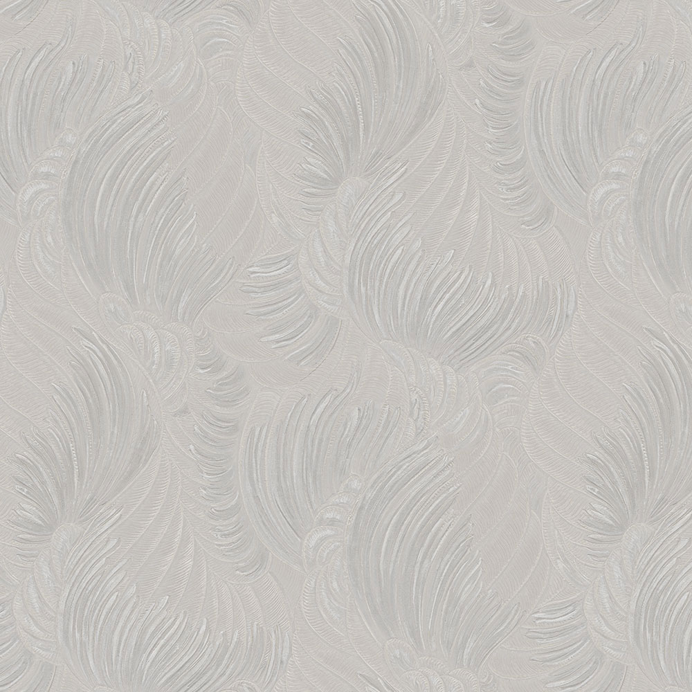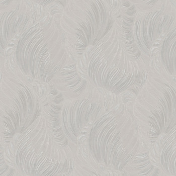 Luxury non-woven wallpaper with vinyl surface; embossed, semi-gloss, gray pattern with leaves.