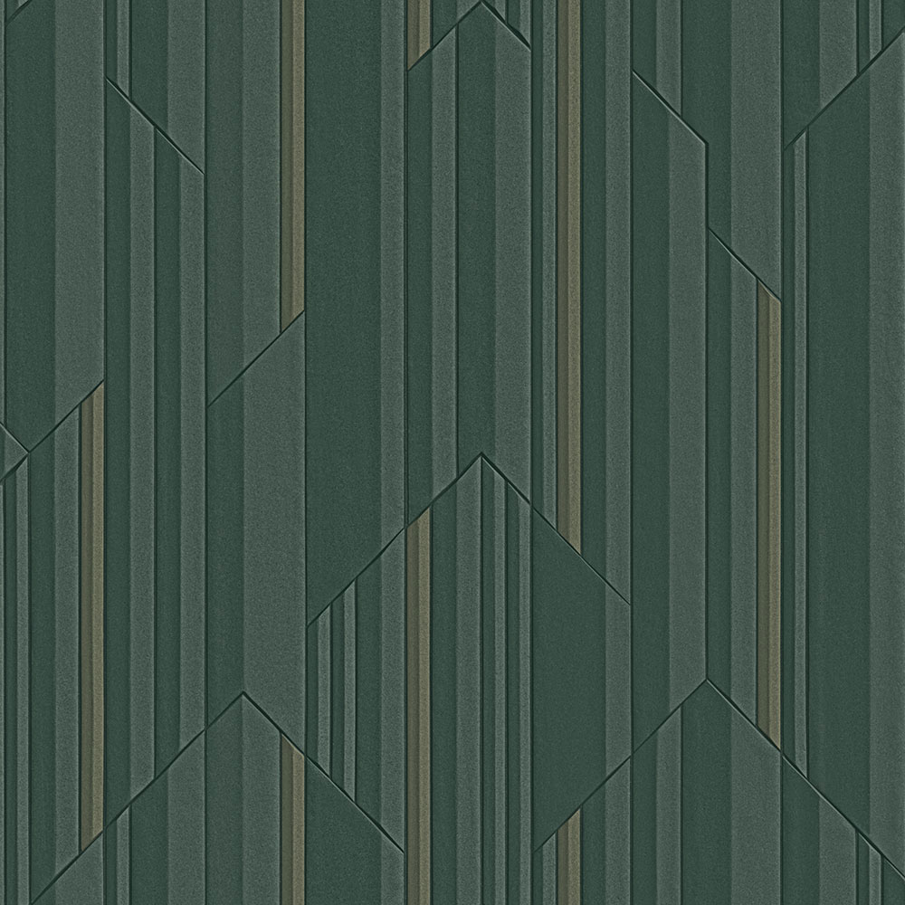 Luxury semi-gloss geometric non-woven wallpaper with vinyl surface, shades of green and metallic gold.