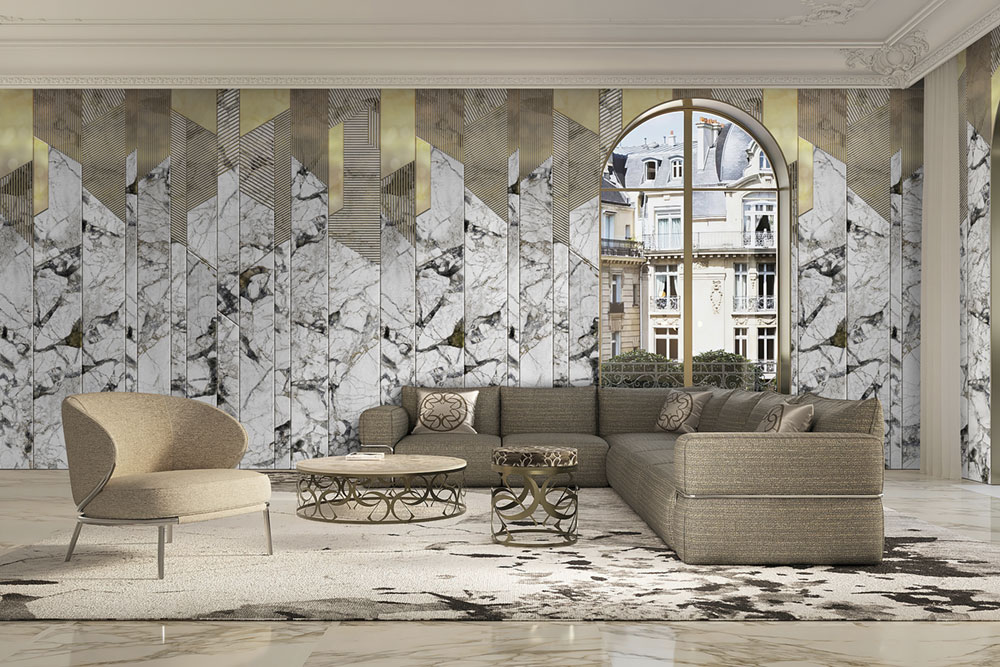 Luxury non-woven wall mural, imitation of marble paneling.