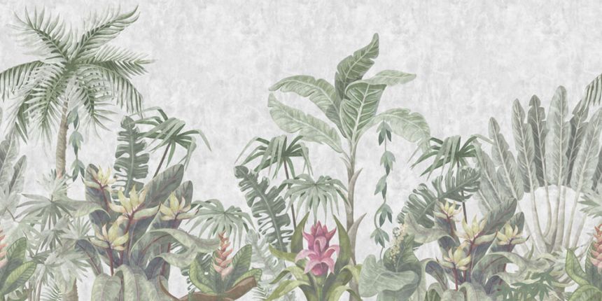 Luxury non-woven wall mural, motif of palm trees and tropical plants.
