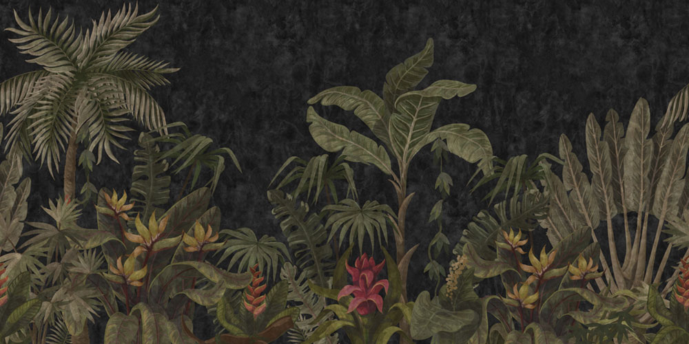 Luxury non-woven wall mural, motif of palm trees and tropical plants.