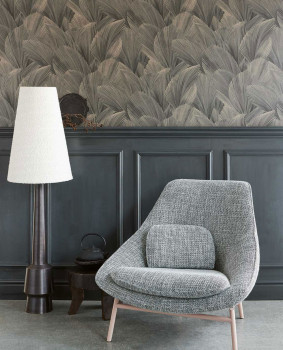 Brown-black non-woven wallpaper, leaves, 340126, Gilded, Eijffinger