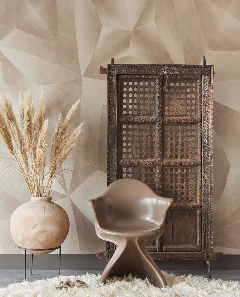 Non-woven wall mural, shades of brown and beige, 3D effect.