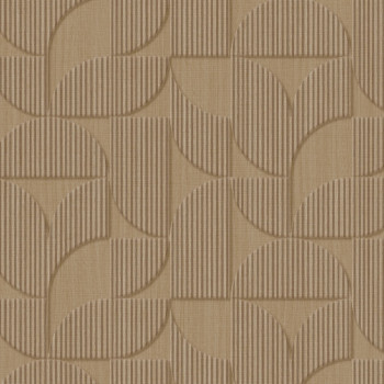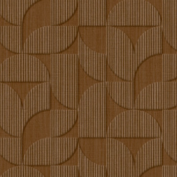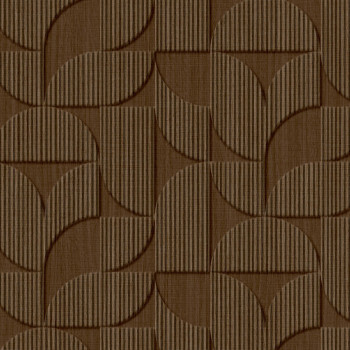 Dark brown, gently embossed, non-woven wallpaper, geometric pattern in retro style.