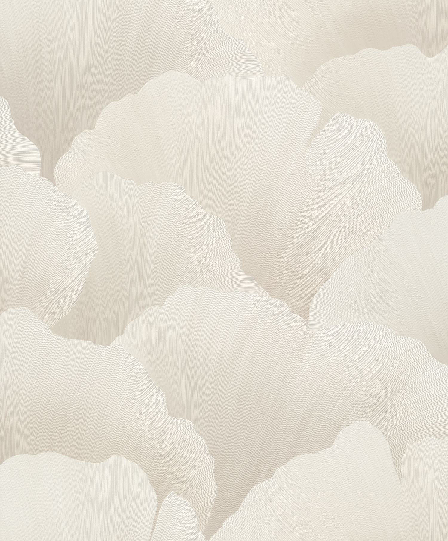 Embossed non-woven wallpaper, Ginkgo leaves in cream shades.