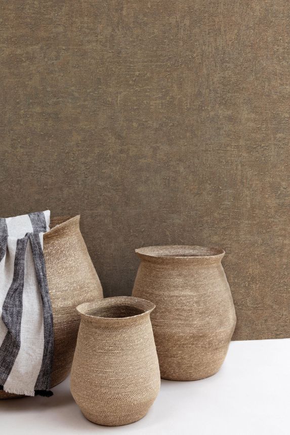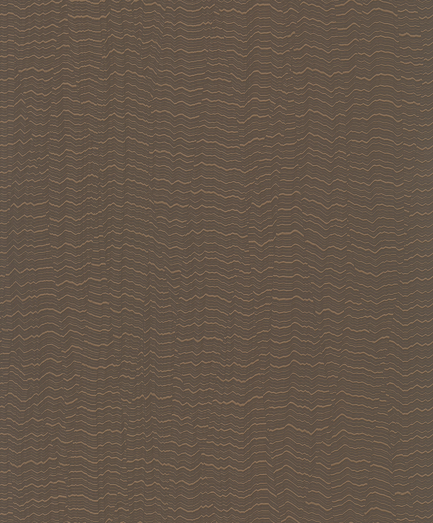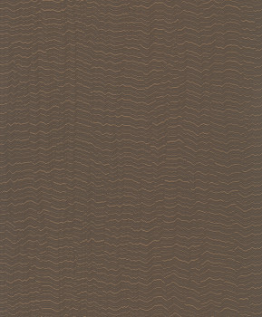 Brown non-woven wallpaper, semi-gloss, subtly embossed, metallic wave pattern.