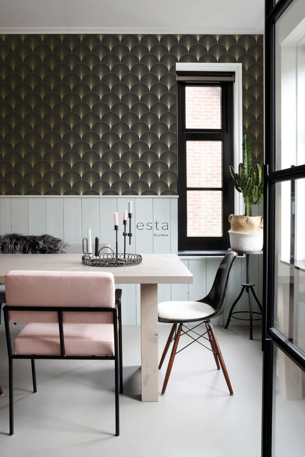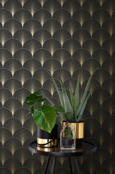 Non-woven wallpaper, Art deco, black-gold, 139457, Bloom, Esta Home