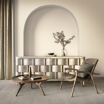 Luxury geometric non-woven wallpaper with vinyl surface, distinctively embossed stripes, ivory color, semi-gloss.