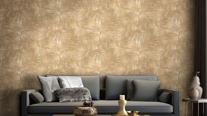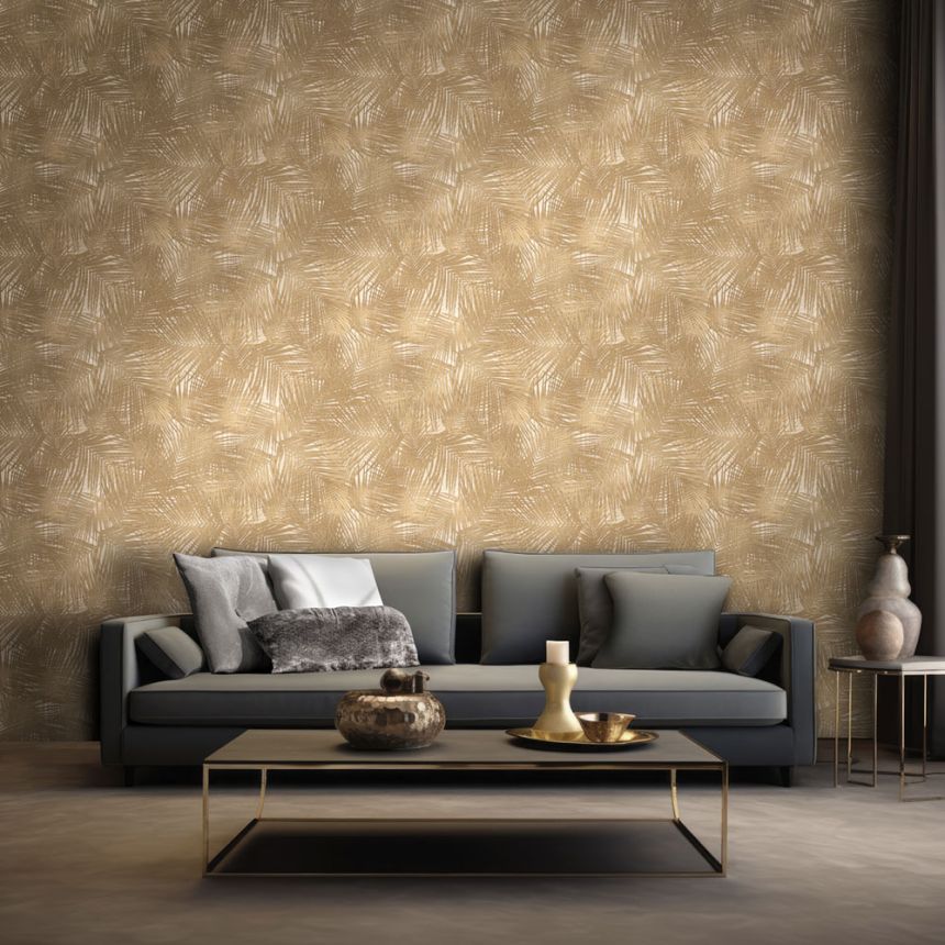 Luxury gold non-woven wallpaper with vinyl surface, effective intertwined pattern with metallic sheen.