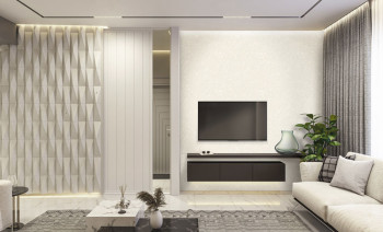 Luxury white / ecru non-woven wallpaper with vinyl surface, different textures and reflections form a spectacular pattern.
