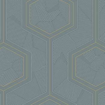 Luxury blue non-woven wallpaper with vinyl surface, embossed geometric pattern with metallic semi-gloss.
