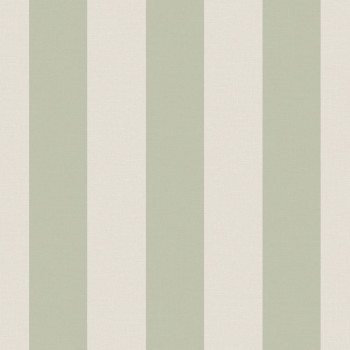Non-woven wallpaper, green and gray-white stripes.