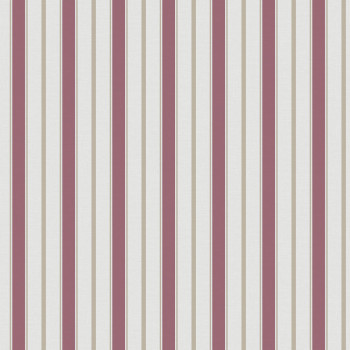 White non-woven wallpaper, stripes in red and beige shades.