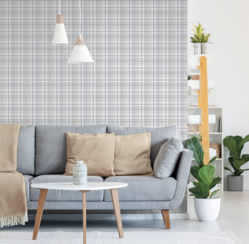 Non-woven wallpaper, blue-gray checkered.