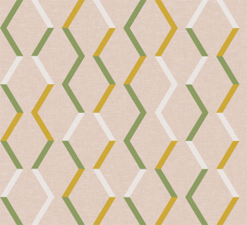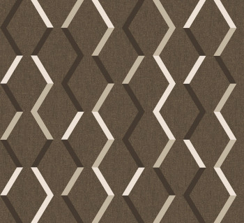 Non-woven wallpaper, coarse fabric texture, zigzag pattern, brown, bronze and black background, black pattern and shades of green.