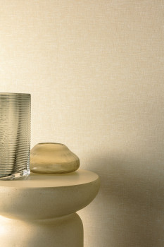 Non-woven wallpaper, fabric texture, shades of light beige/ivory.