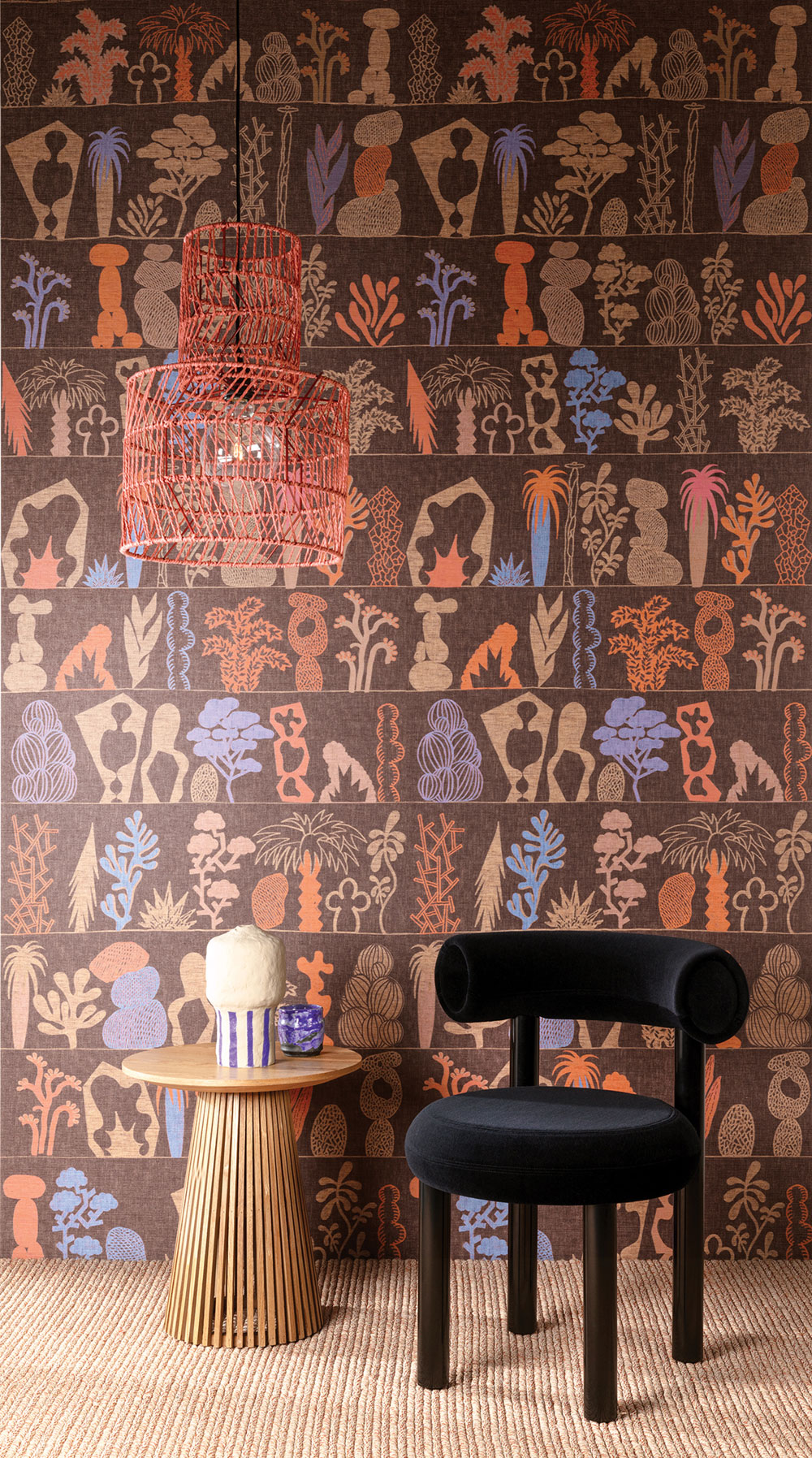 Be inspired by the vibrant colors and joyful spirit of painters Mahieddine Baya and Henri Matisse with the Joy wallpaper collection from Masureel. This unique collection brings energy and optimism to your interiors, reflecting the expressive artistry of these two remarkable artists.