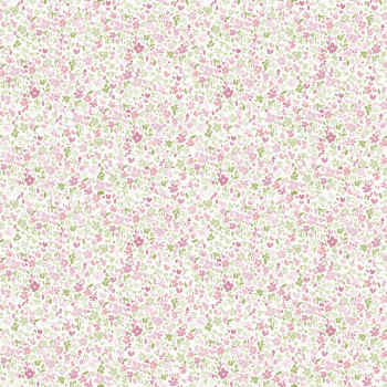 White non-woven wallpaper, floral pattern in shades of green and pink.