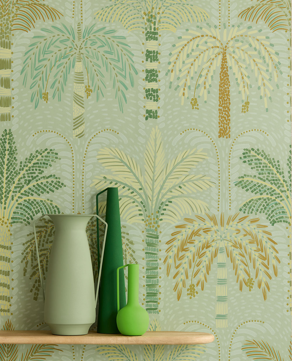 With Solange, your walls will blossom with the joyful colors of floral designs inspired by traditional African batik. Fall in love with a modern nomadic spirit through ikat-inspired patterns. Or opt for a stylish zigzag motif with delicate metallic accents, paying tribute to the beautiful Kuba fabrics. This unique collection pairs perfectly with a palette of natural shades, from vibrant tones to soft, earthy hues reminiscent of raffia and batik rugs.