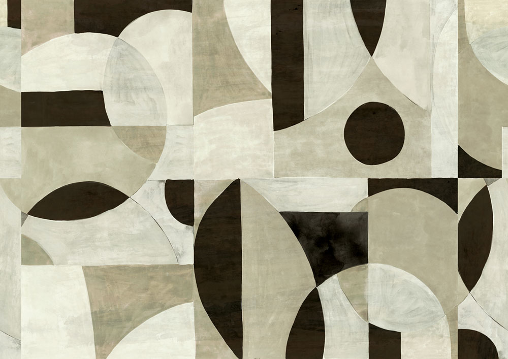 Non-woven wall mural, geometric pattern, shades of gray-beige and black. A design wall mural will make your interior cozy and create a pleasant atmosphere.