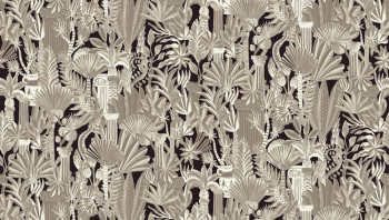 Non-woven wall mural, Tresor - motifs of plants, palm trees, historical columns and vases. A design wall mural will make your interior cozy and create a pleasant atmosphere.