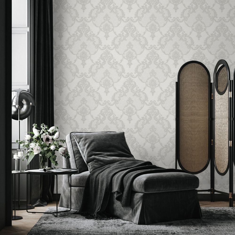 The wallpapers in this collection will enchant you with stunning details like embroidery effects, delicate lace patterns, and subtle glitter, adding an elegant and sophisticated touch to your walls. Traditional baroque patterns combined with modern elements create a cozy atmosphere filled with luxury and comfort.