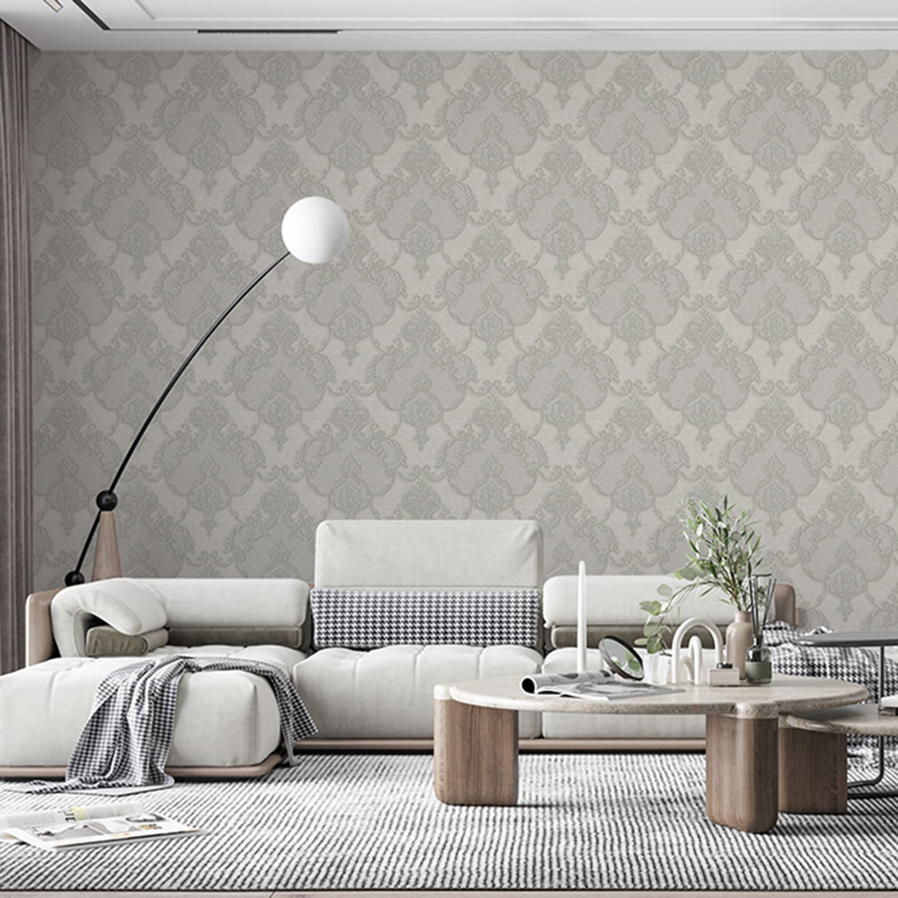 Luxury non-woven wallpaper, baroque pattern with gold semi-gloss, small glitters, shades of grey and grey-beige.