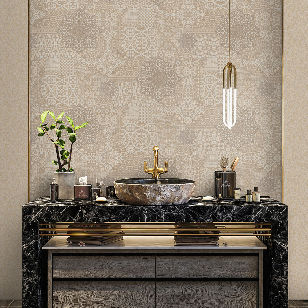 The wallpapers in this collection will enchant you with stunning details like embroidery effects, delicate lace patterns, and subtle glitter, adding an elegant and sophisticated touch to your walls. Traditional baroque patterns combined with modern elements create a cozy atmosphere filled with luxury and comfort.