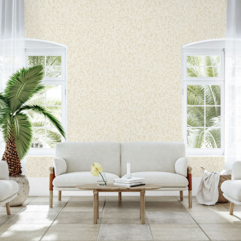Luxurious cream non-woven wallpaper, fabric imitation, small gold glitters in places.