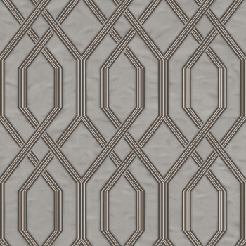 Luxury semi-glossy non-woven wallpaper with vinyl surface, grey background, embossed outlines in silver and metallic blue-gray.