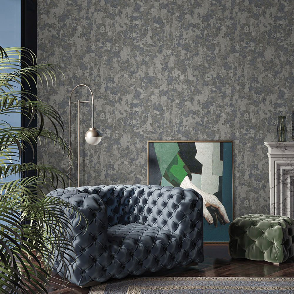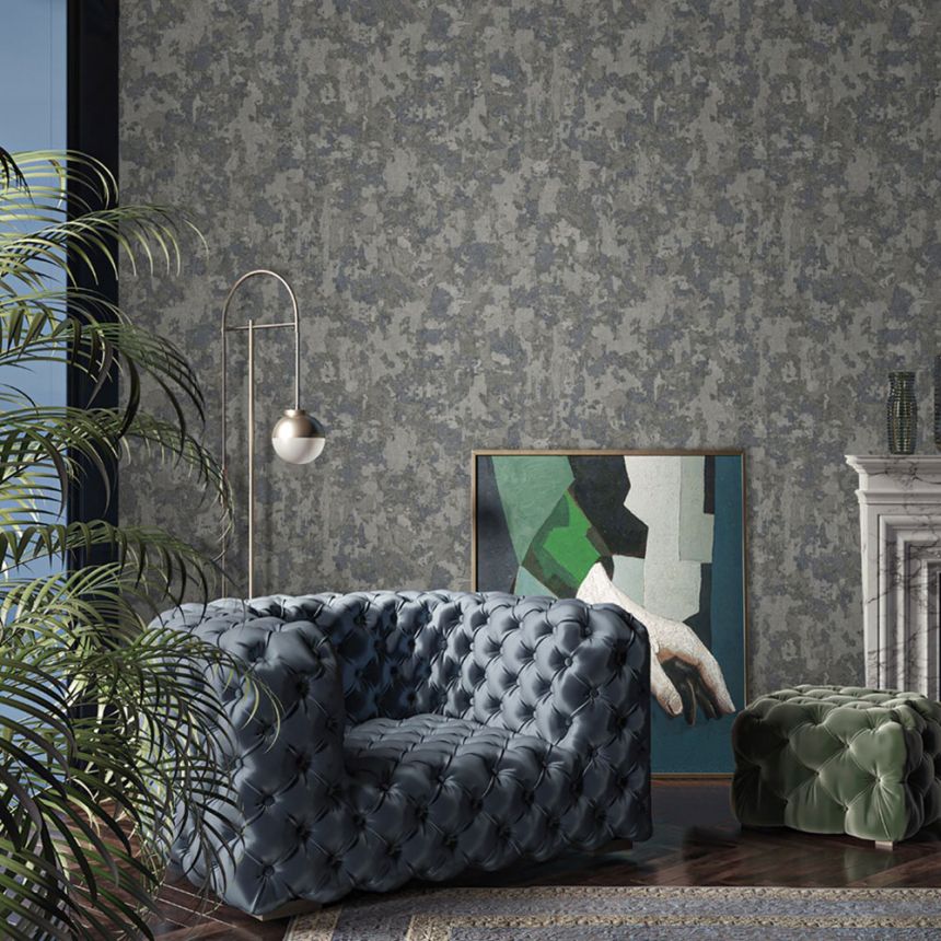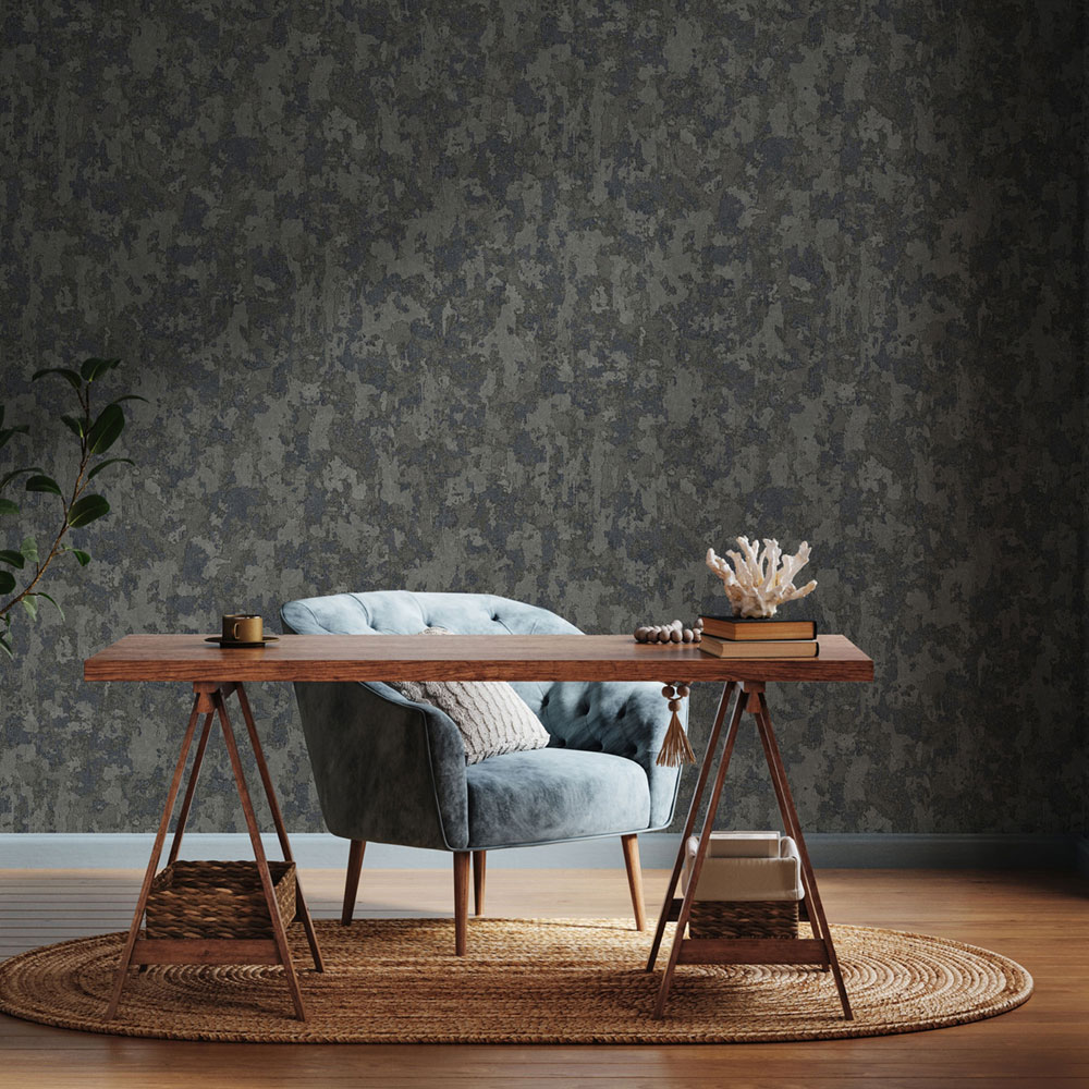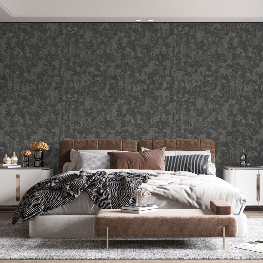 Luxury non-woven wallpaper with vinyl surface, stucco pattern in black and silver.