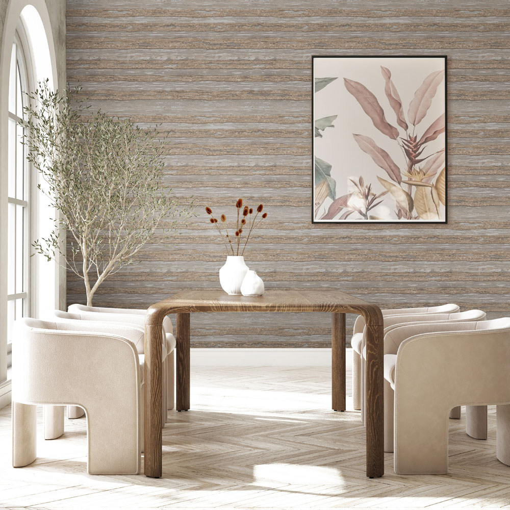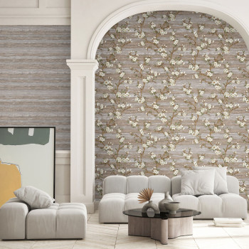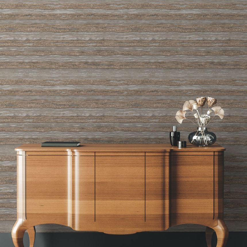 Luxury non-woven wallpaper with vinyl surface, distinctively embossed, semi-gloss, brown and brown-gray texture.