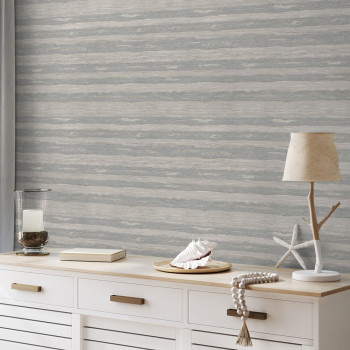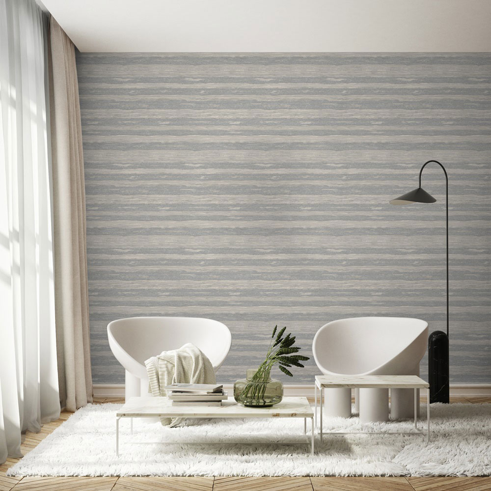 Luxury non-woven wallpaper with vinyl surface, distinctively embossed, semi-gloss, gray-silver texture.