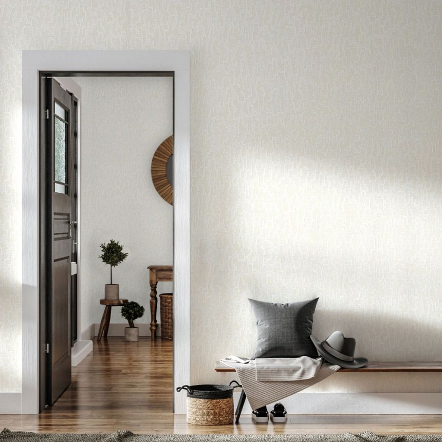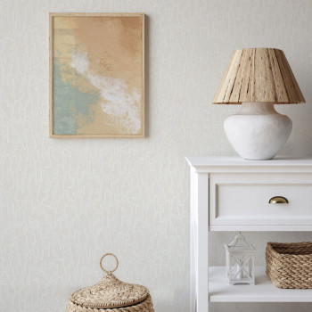 Non-woven wallpaper with vinyl surface, imitation fabric in shades of cream.