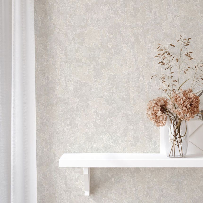 Luxury non-woven wallpaper with vinyl surface, design evokes historical plasters, stucco, creamy semi-gloss.