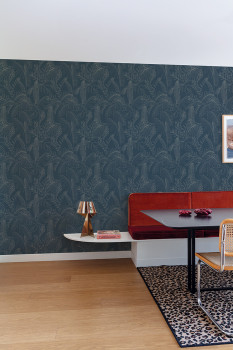 Blue non-woven wallpaper with leaves, A69303, Vavex 2026
