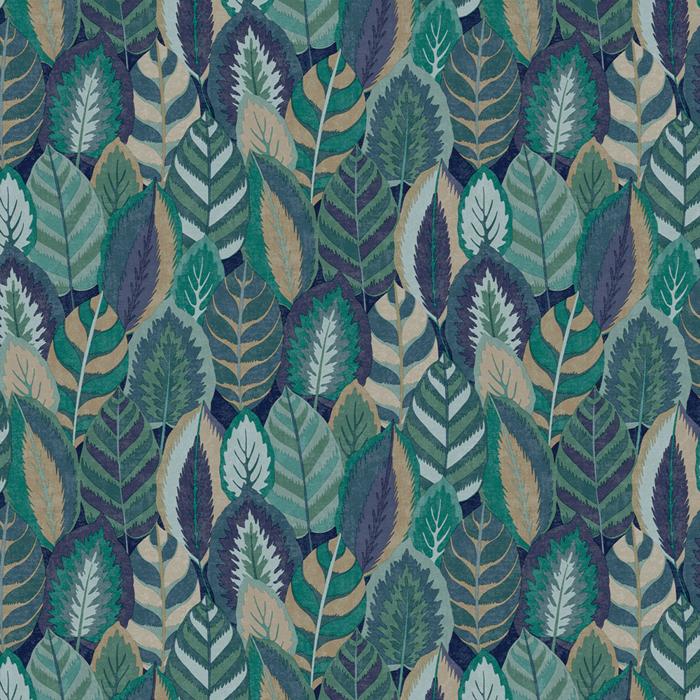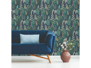 Blue-green wallpaper with leaves, 121806, Solace, Superfresco Easy