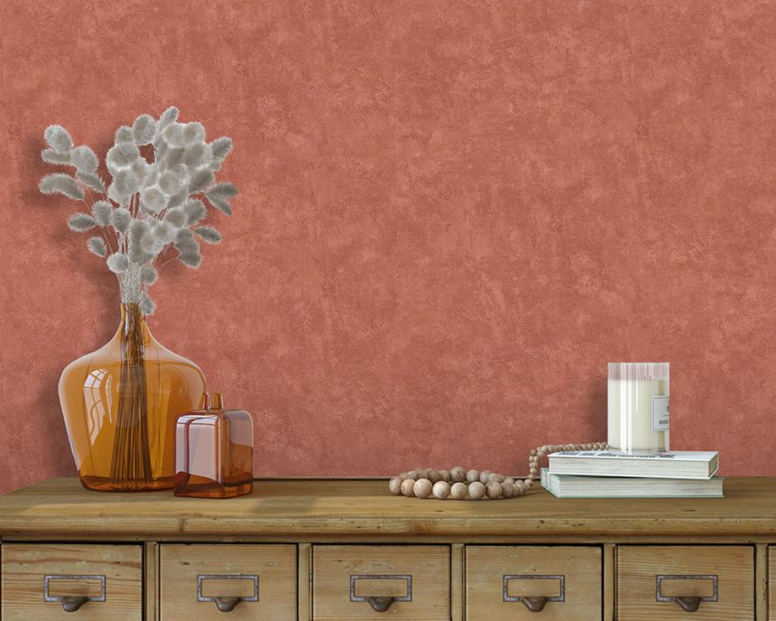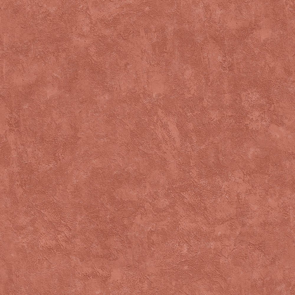 Non-woven wallpaper in concrete imitation, brick red shades.