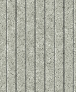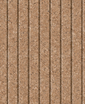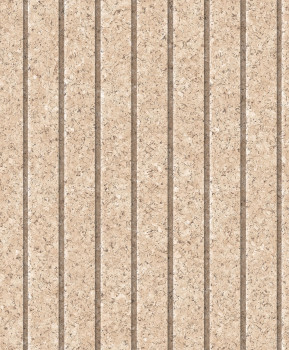 Striped non-woven wallpaper, cork imitation in shades of green.