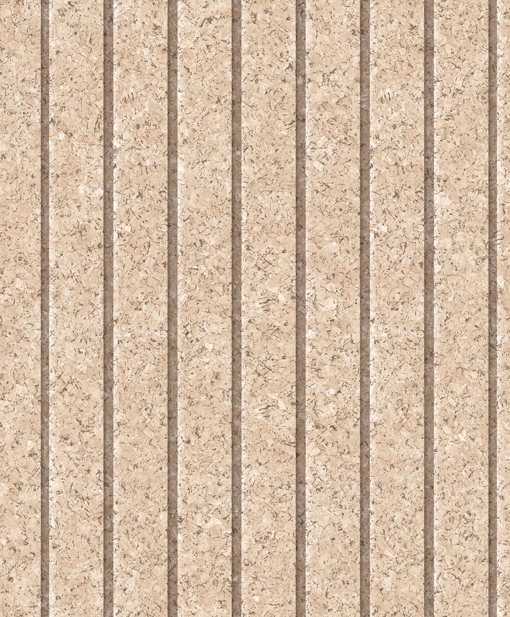 Striped non-woven wallpaper, cork imitation in shades of beige.