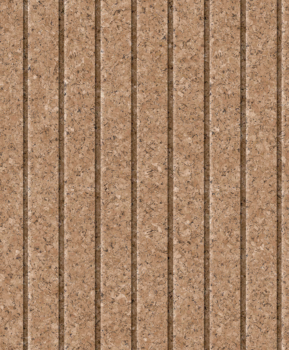 Striped non-woven wallpaper, cork imitation in shades of brown.