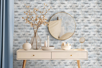 Non-woven wallpaper, blue, 3D marble tiles, M79991D, Brut, Ugépa
