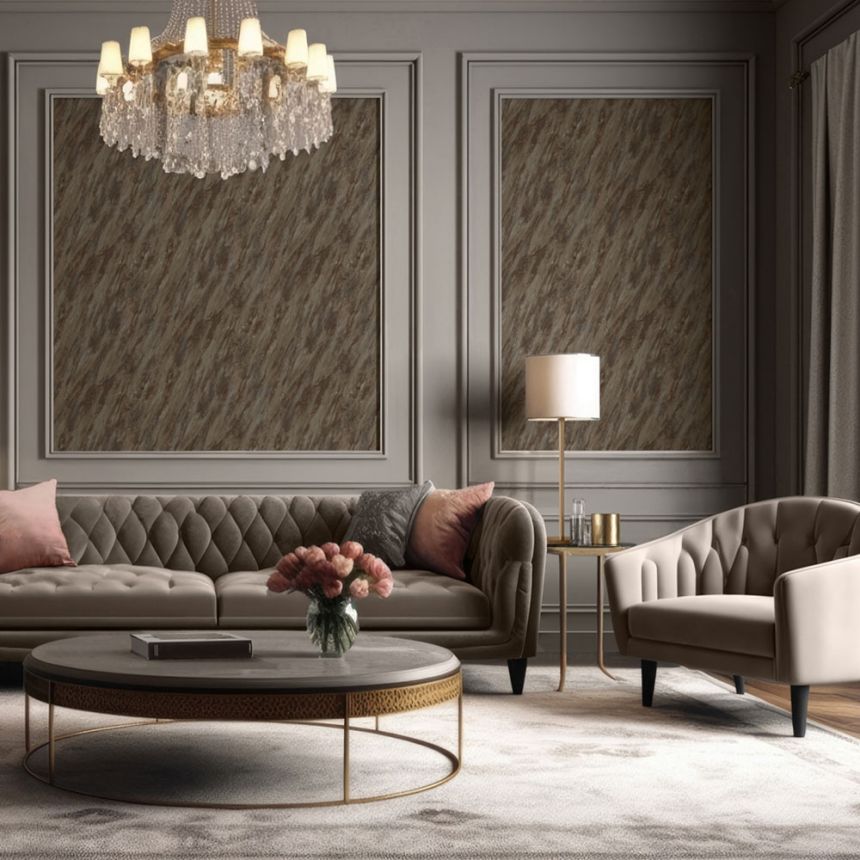 Luxury non-woven wallpaper, vinyl surface, the look of a luxurious fabric in shades of brown and metallic gold.