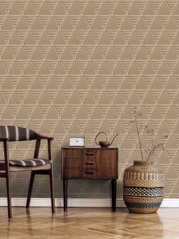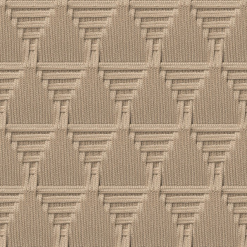 Non-woven wallpaper with vinyl surface, fine texture, design of a string-knitted mat in shades of brown and beige.