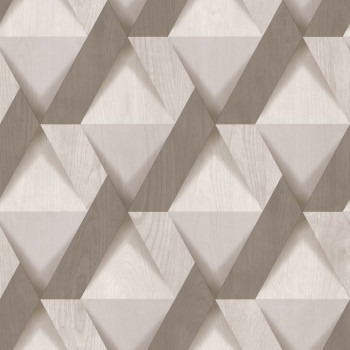 Non-woven wallpaper with vinyl surface, wood paneling design in shades of grey-beige and brown.