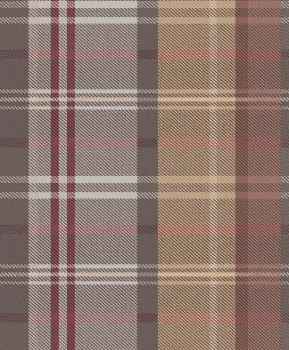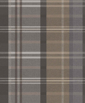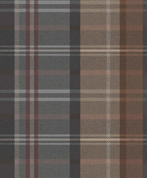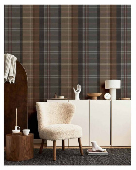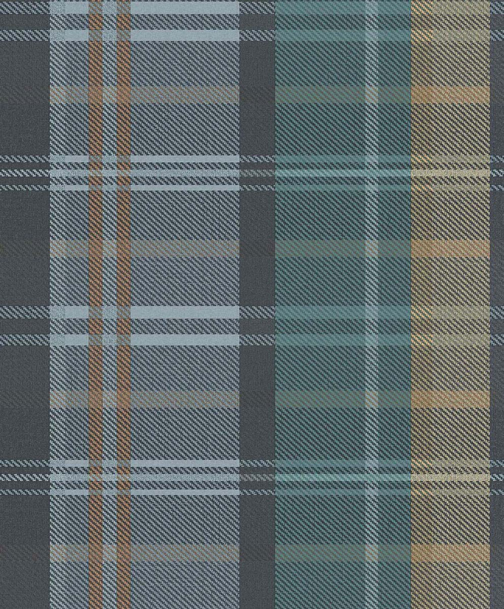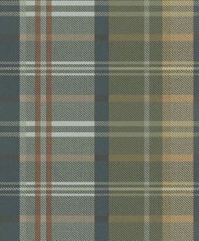 Non-woven wallpaper, imitation tartan fabric in shades of turquoise, blue and brown-bronze.