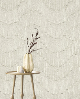 Non-woven wall mural, shades of beige and gray-beige, wave design imitating rustic fabric.